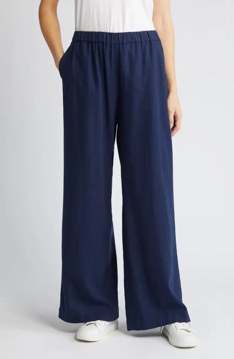 Wide Leg Pull-On Linen Blend Pants
